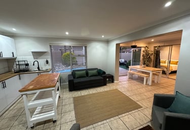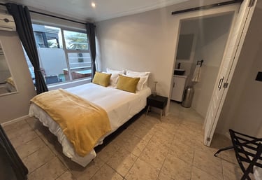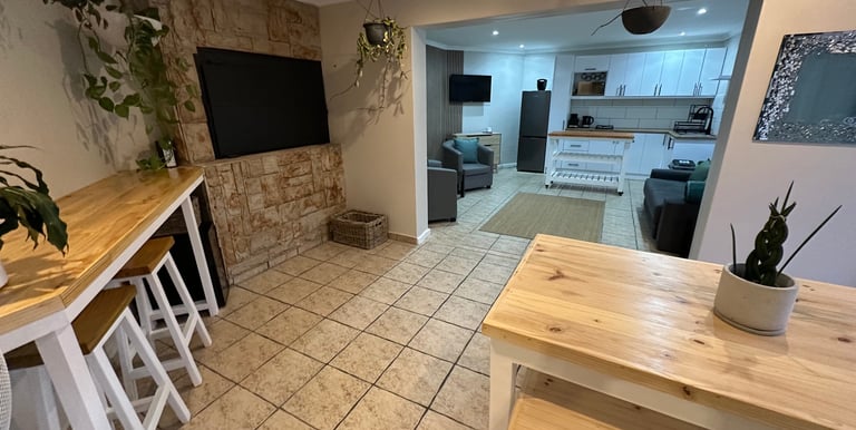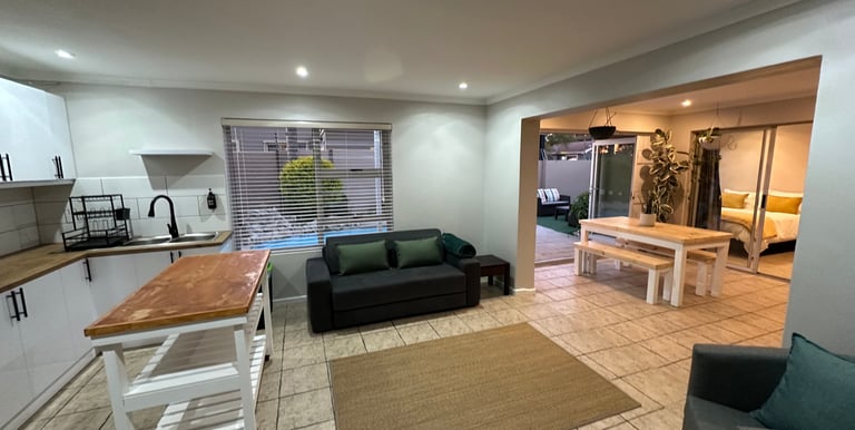 1 bedroom with a queen bed plus a double sleeper couch in the communal area, ideal for children or one extra adult only. This property blends relaxation with entertainment, making it the perfect spot for a romantic getaway or family holiday. With private swimming pool and private jacuzzi, situated on an existing property shared with the owners and hosts Craig and Sally. The family area offered is totally private and mostly wind free due to positioning, with a separate entrance, completely cut off from the rest of the house. Use of the swimming pool, jacuzzi and outdoor / indoor braai facilities are for the sole use of the guests only. Spend your days lounging by the pool, sharing meals around the braai, and soaking in the jacuzzi while creating memories.