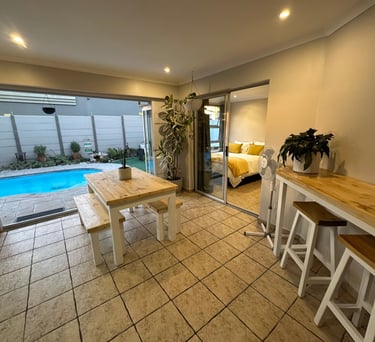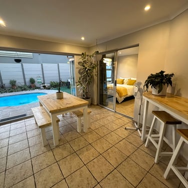 AquaPalms Hideaway is ideally situated for a short drive to sandy beaches, famous wine routes through Durbanville and an assortment of dining options, with uninterrupted views of Table Mountain and magical sunsets. Also close to other services such as laudromats etc